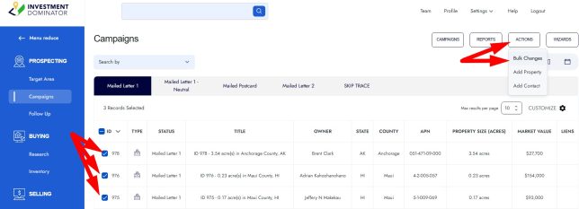Step 1: Navigate to the property table under the PROSPECTING, BUYING, or SELLING section from the left-side navigation menu.