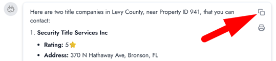 The AI Copilot helps you uncover property details, resources, and risks — but it works alongside your title attorney or closing company. By combining professional guidance with AI-powered research, you’ll have the information and confidence to close smarter and safer.