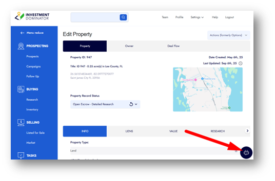 PRO TIP: Add any known parcel details (APN, county, size, city, zip code, owner comments) to the property record before starting.