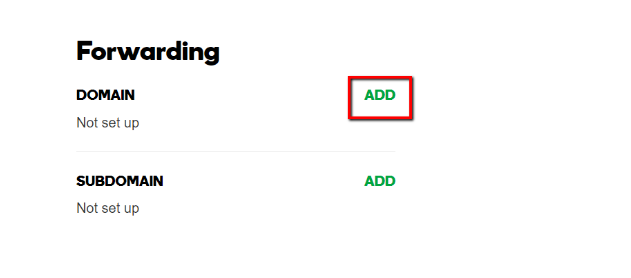 9. Scroll down to the Forwarding section and click on Add next to the Domain section as shown:
