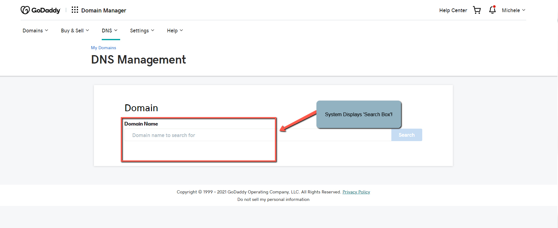 Note: The following SEARCH box will display for entry of domain name as shown: