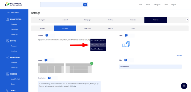 Configuring your custom domains involves a 2-step process. Please follow the instructions below to configure both your Buying Website and Selling website(s) in the Investment Dominator.