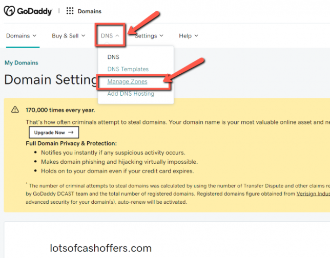 Execute the following to register your purchased Domain on the domain provider’s site, (i.e. GoDaddy, Name Cheap, REI Black Book etc.). In this example access GoDaddy.com.