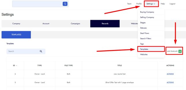 - You will be taken to the Templates for Record page, where all existing custom documents are listed.