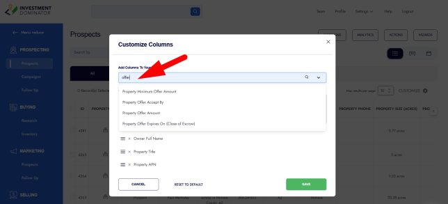 The ‘CUSTOMIZE‘ column view feature allows you to customize which fields (columns) you see when viewing records in Prospecting, Marketing, or Selling in ‘List View’. This helps you tailor the records list to show the exact information you need, in the order that makes the most sense for your workflow.