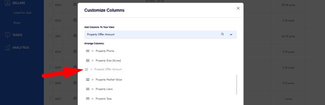 - Click and drag-and-drop columns and move them up or down in the list to rearrange them.
