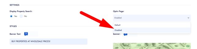 Disabling the optin page allows you to create custom landing pages for different buyer market types and direct visitors straight to your property listings, which can be more effective as your marketing strategy matures.
