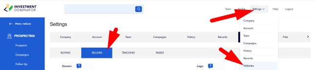 - Go to the ‘Settings‘ menu in the Investment Dominator.