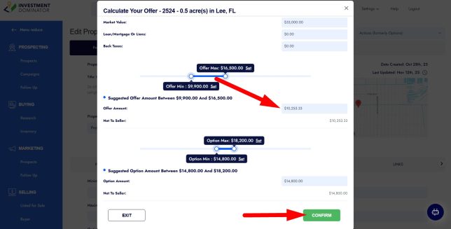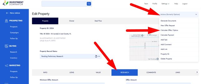 Once property owners have contacted you requesting a cash offer and you’ve completed your preliminary research using the Property IQ wizard, you’re ready to calculate and generate your offers.