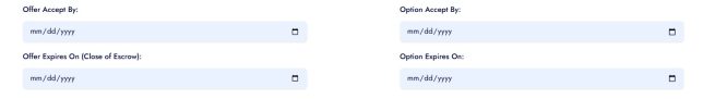 Your offer acceptance and expiration dates are automatically calculated by default based on your global settings. However, if you’d like to set specific dates for certain properties, you can use the following fields to override the defaults: