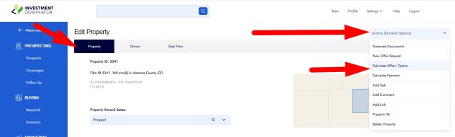 It is accessed from each property’s record under the ‘Actions‘ menu by selecting ‘Calculate Offer Option‘.