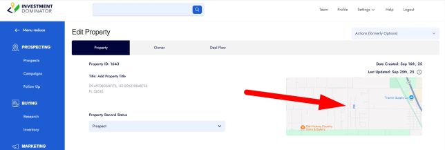 - Inside the Investment Dominator CRM, locate the property you want to market.