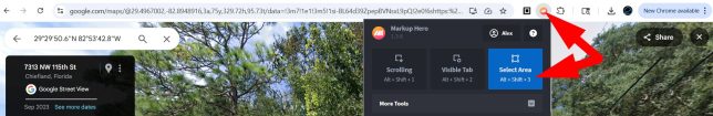 - Click the MarkupHero Chrome extension and then the ‘Select Area‘ option: